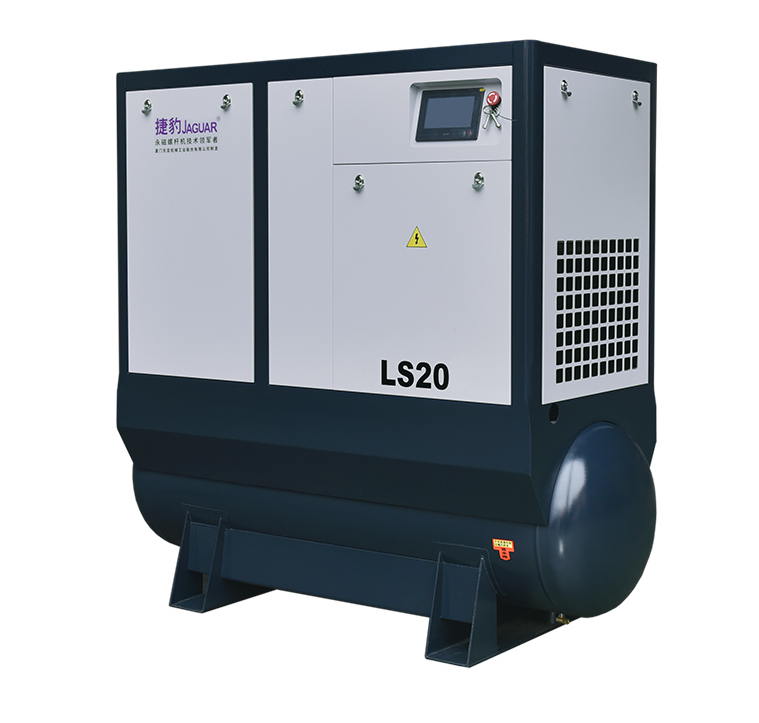 捷豹LS集成一体式螺杆机系列采用控制系统集成一体,采用显控一体机,一键控制螺杆机和冷干机的启停,操作更便捷。全系列搭配IE4永磁变频超高效率电机,永磁变频电机与电励磁同步电机相比,具有超高能效、结构紧凑、体积小、重量轻等特点。捷豹独创的永磁液冷一体式驱动技术,比常规电机驱动模式,效率提升8%,防护等级高达IP65。