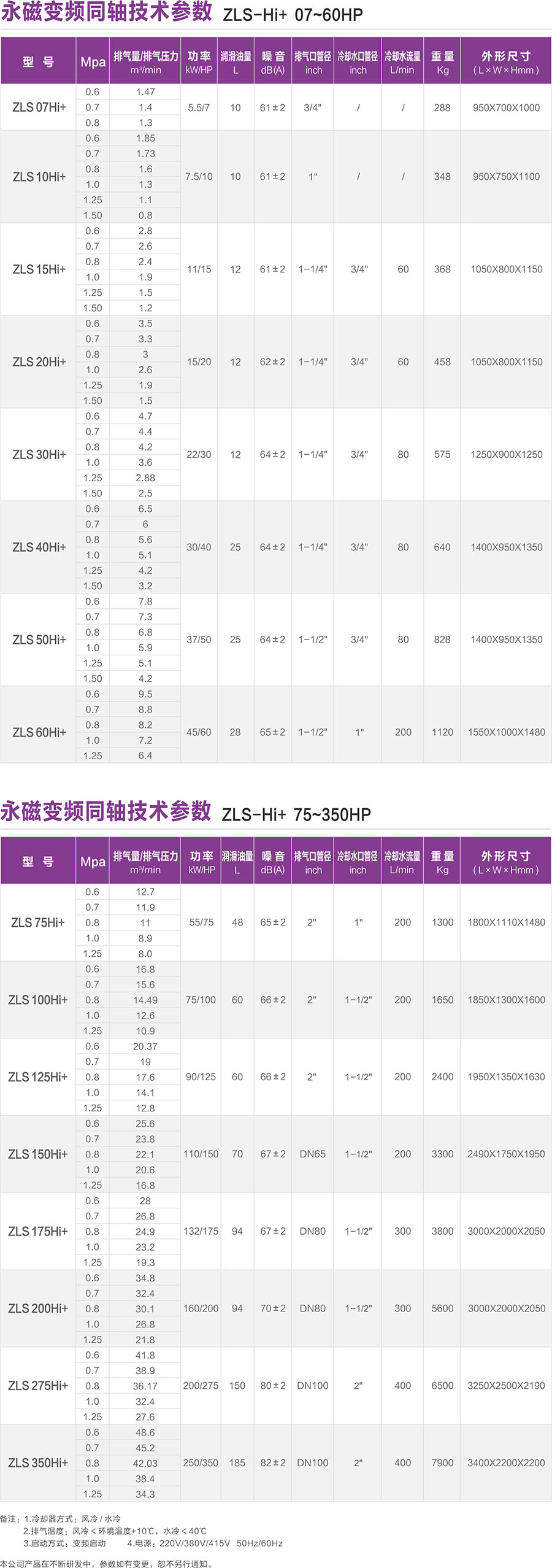 优化机头配比造就大排量: 由于通过长期严谨的理论研究和大量的型式试验,为机头配比和设计的优化奠定了坚实的技术基础。ZLS-Hi+空压机系列产品采用优化的机头配比与系统设计,排气量比同等功率压缩机高10%。